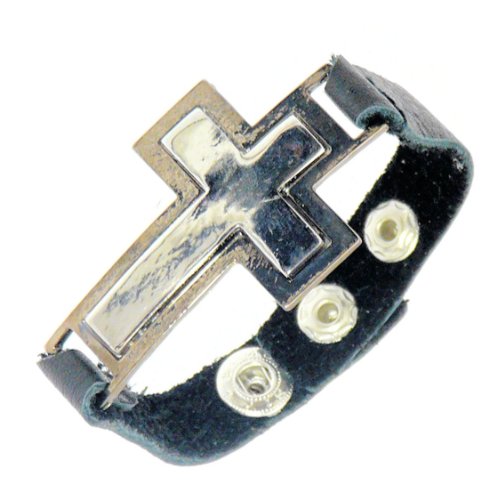 Metal Cross / Crucifix Leather Bracelet / Leather Wristband – (MAX WRIST SIZE 19 cm) – 166