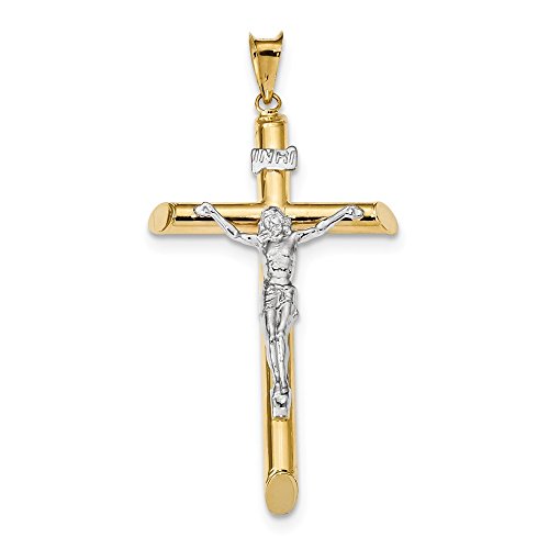 14K Two Tone Gold Polished Crucifix Cross Pendant