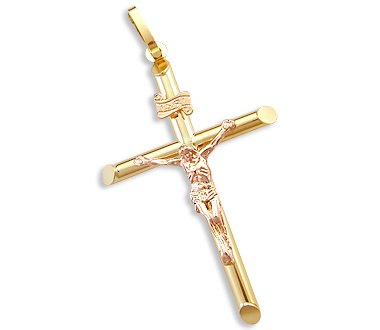 14k Yellow n Rose Gold Tube Cross Crucifix Pendant 2″