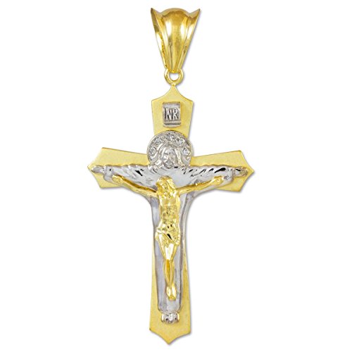 Solid 14k Two-Tone Gold Jesus Christ the Redeemer Cross INRI Crucifix Pendant