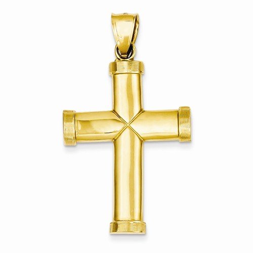 Solid 14k Yellow Gold Polished Latin Cross Crucifix Pendant (48mm x 26mm)