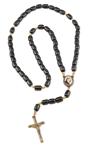 Saint St. Padre Pio Black Wood Beads Rosary with Jesus Cross Crucifix, Made in Brazil, 19 Inch