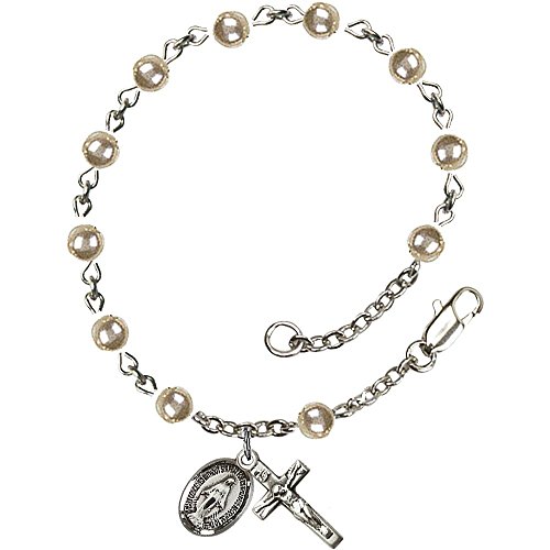 Sterling Silver Rosary Bracelet 4mm Sterling Silver Faux Pearl beads, Crucifix sz 5/8 x 1/4.