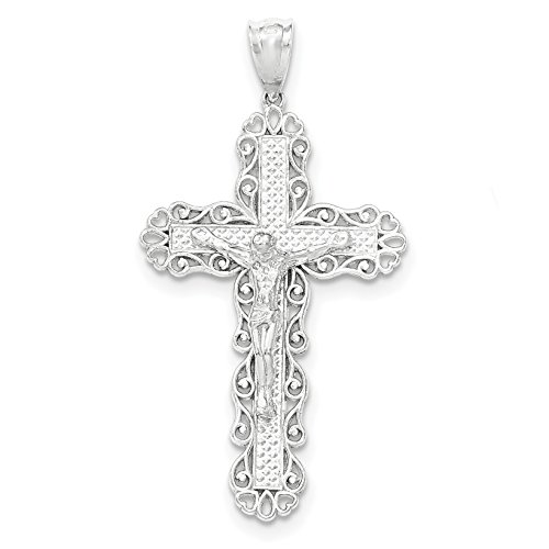 Sterling Silver Polished Filigree Cross INRI Crucifix Pendant