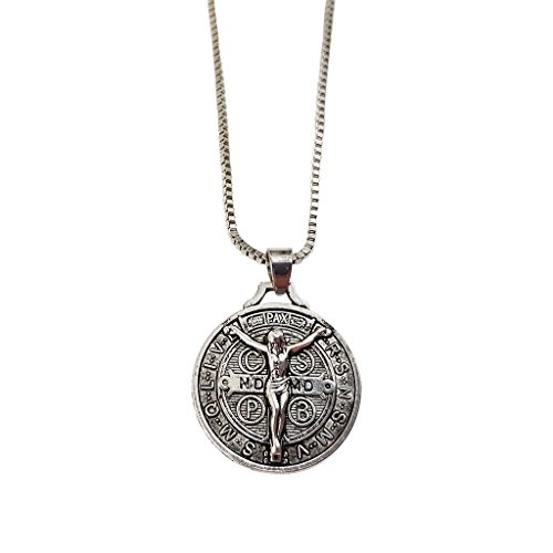 Saint St Benedict Nursia Patron Medal Jesus Crucifix Religious Pendant Necklace 24 inch Chain
