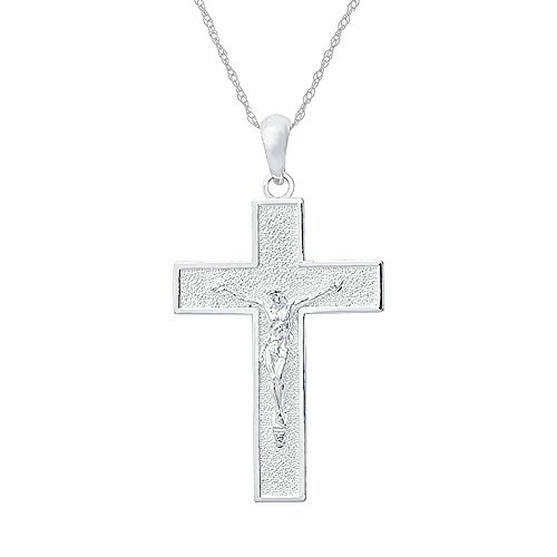 925 Sterling Silver Religious Necklace Charm Pendant with 18 Inch Chain, Crucifix On Textured Block Cross