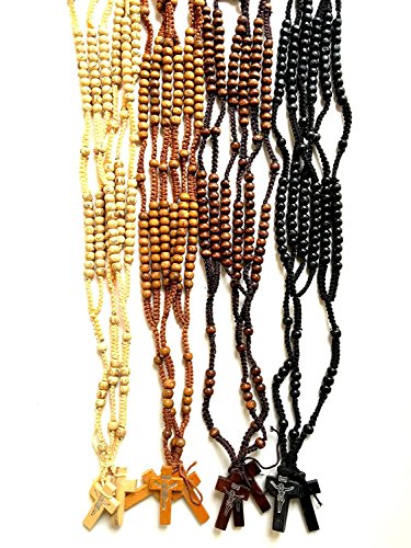 12 Pieces One Dozen Assorted Wood Nazareth Catholic Rosary Beads Jesus Imprint Crucifix by Bethlehem Gifts TM