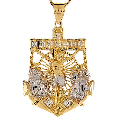 14k Two Tone Gold White CZ Jesus and Saints Crucifix Anchor Religious Pendant