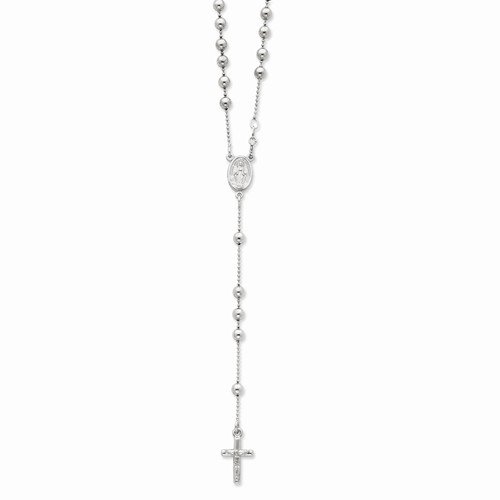 Solid 925 Sterling Silver Polished Rosario Rosary Chain Necklace Cross Crucifix Pendant Necklace 21″