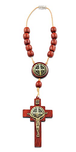 St Benedict Car Rearview Mirror Rosary One Decade Cross Crucifix – Made in Brazil