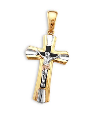 Solid 14k Gold Tri-Color Mariner Crucifix Cross Pendant (17mm x 31mm)