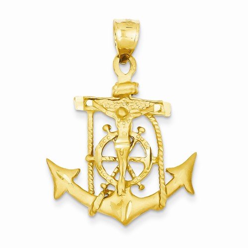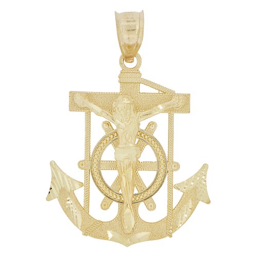 Solid 14k Yellow Gold Anchor Mariners Cross Crucifix Pendant (40mm x 26mm)