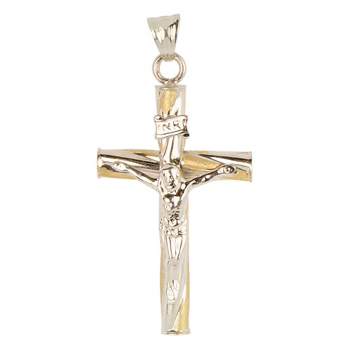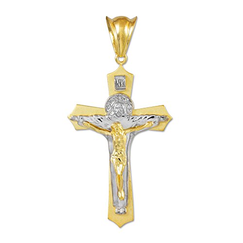 14k Two-Tone White and Yellow Gold Jesus Christ the Redeemer Cross INRI Crucifix Necklace Pendant
