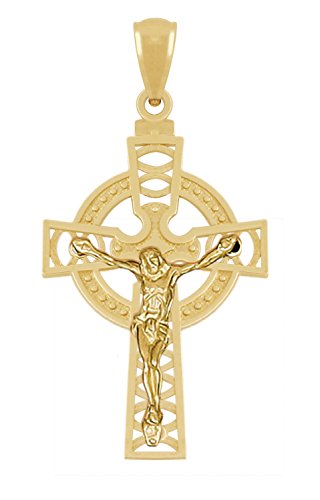1 3/16in Polished 14k Yellow Gold Irish Celtic Crucifix Cross Pendant Charm