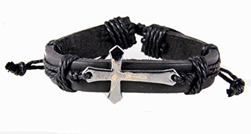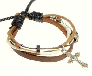 4030010 Christian Leather Cross Crucifix Bracelet Tension Knot Wrap