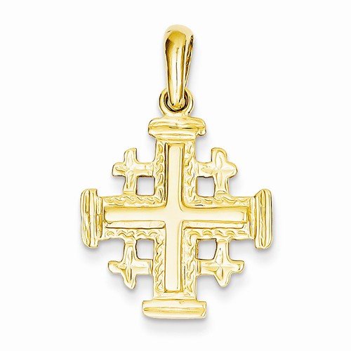 Solid 14k Yellow Gold Jerusalem Cross Crucifix Pendant (30mm x 24mm)