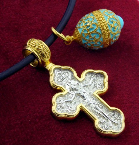 St Michael Icon Crucifix Russian Sterling Silver 925 Gold Tone Cross with Egg