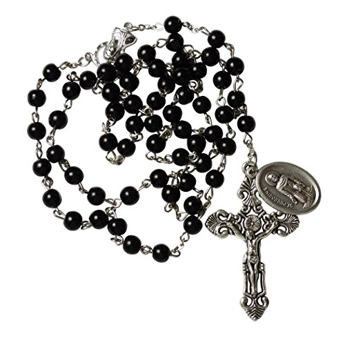 Saint Peregrine Cancer Victims Patron Black Rosary Silver Plated Crucifix Leather Case Blessed Prayer C