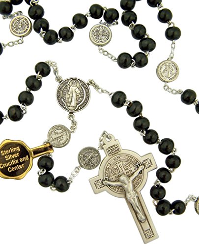 Boxwood Bead St Benedict Rosary with Sterling Silver Center and Crucifix, 15 Inch