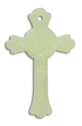 Moulded Acrylic Luminous Glow in the Dark Saint Benedict Cross Crucifix, 2 1/2 Inch
