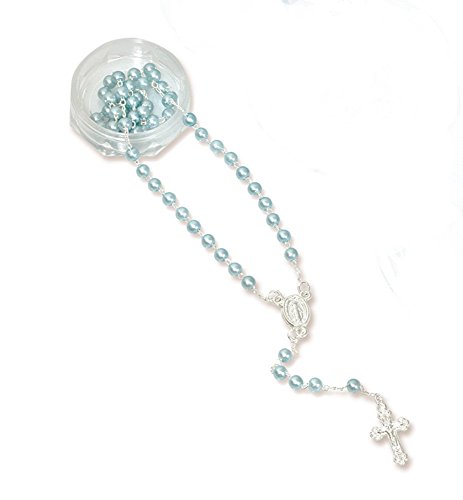 12 pc Mini Blue Simulated Pearl Beaded Rosary Favors with Metal Crucifix