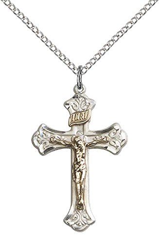 Two-Tone Sterling Silver/Gold Filled Crucifix Pendant with 18″ Sterling Silver Lite Curb Chain.
