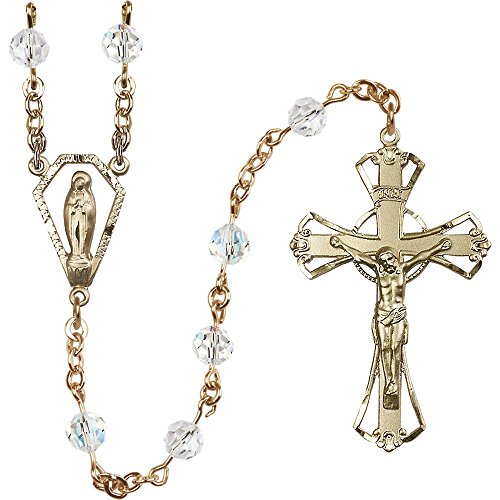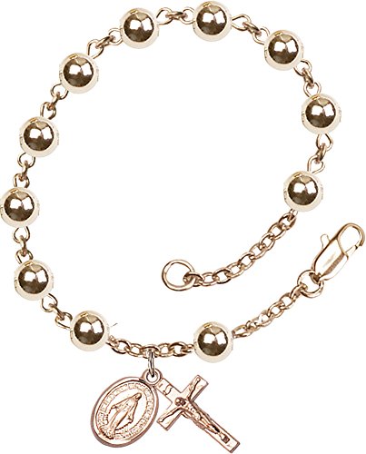 14kt Gold Filled Rosary Bracelet features 6mm Gold Filled Round beads. The Crucifix measures 5/8 x 1/4.