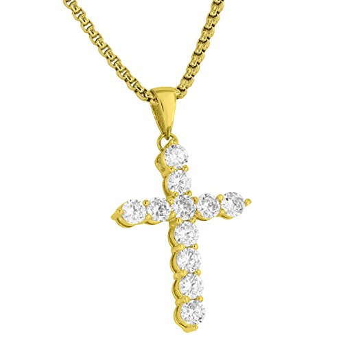 Jesus Cross Crucifix Pendant Solitaire Simulated Diamonds Free Box Necklace 18K Gold Tone