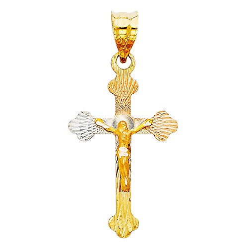 14k Tri Color Gold Religious Crucifix Jesus Cross Stamp Charm Pendant