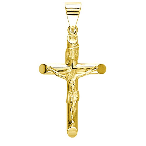 Extra Large Inri Jesus Crucifix Cross Charm, 42mm in 18K yellow gold