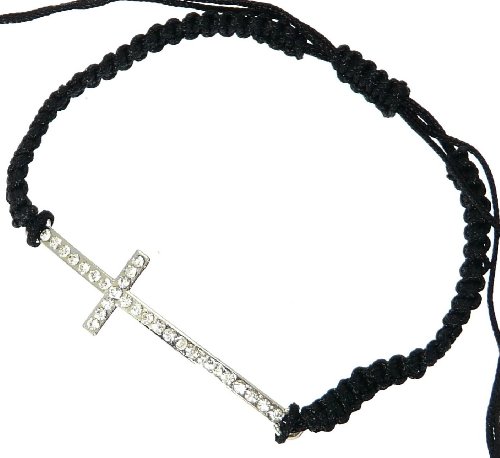 Beautiful Cord Macrame Bracelet With Crystal Effect Metal Cross / Crucifix – Fully Adjustable