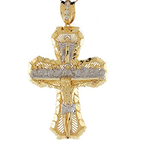 10k Two Tone Gold 10.2mm Last Supper Crucifix Diamond Cut Religious Pendant