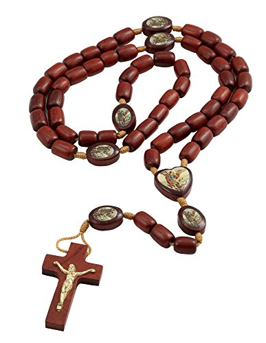 St Saint Michael Wood Bead with Cord Rosary Necklace and Jesus Cross/Crucifix