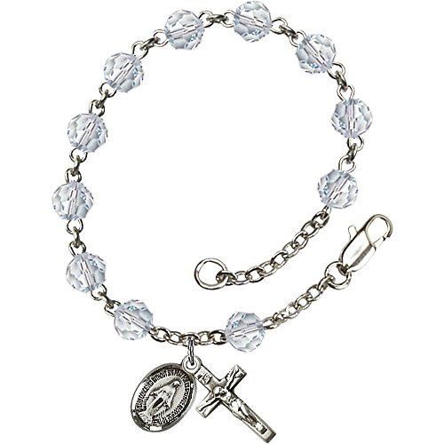 Sterling Silver Rosary Bracelet 6mm Lt. Azore Swarovski beads, Crucifix sz 5/8 x 1/4.