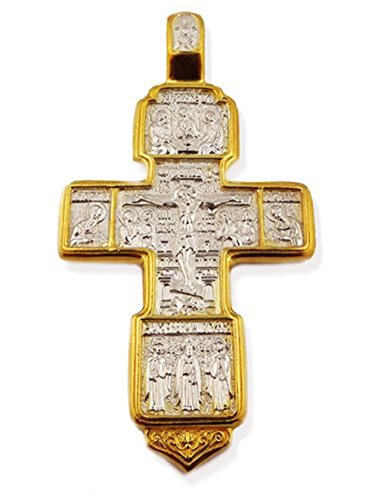 Russian Icon Crucifix Cross Christ Silver Gold Tone 1 Inch