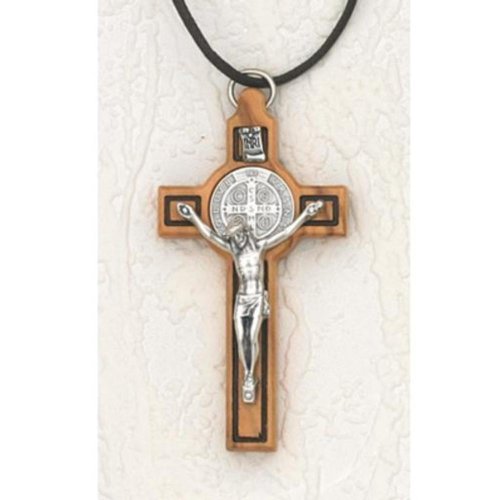 INRI Crucifix with St. Benedict Medal Wood 3″