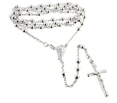 Catholic Sterling Silver Rosary Beads 24″ Necklace with Crucifix
