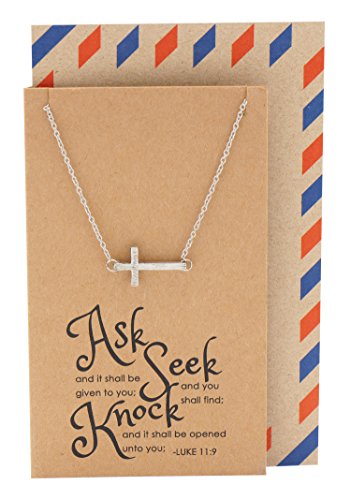 Quan Jewelry Religious Christian Sideways Cross Crucifix Necklace with Bible Quote Birthday Card, Gifts for Women