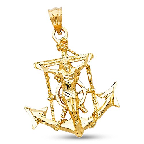 14k Yellow Gold Jesus Anchor Pendant Crucifix Charm Genuine Polished Solid Men 26 x 25 mm