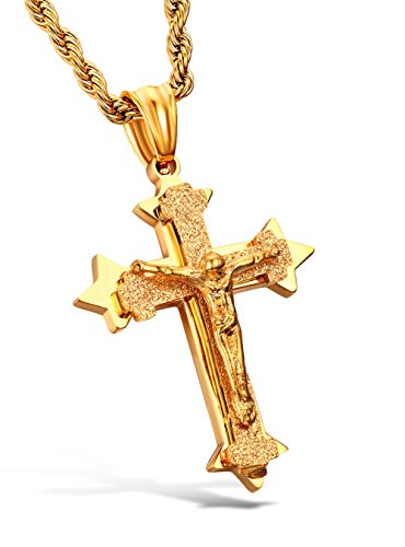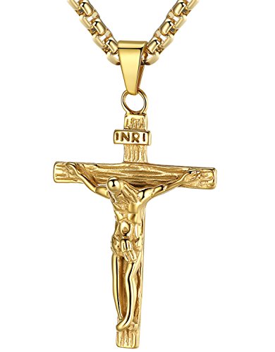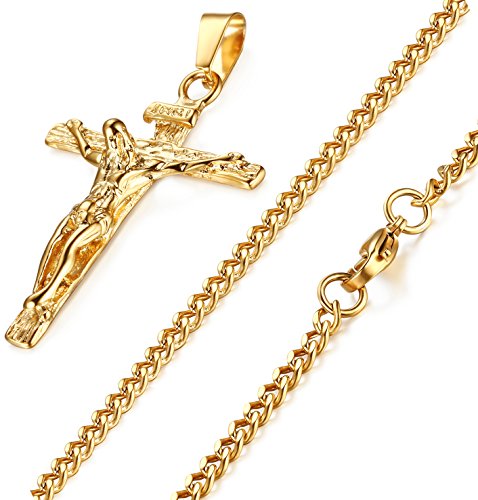 HZMAN Mini Gold Stainless Steel Jesus Christ Crucifix Cross Pendant Necklace for Mens Womens