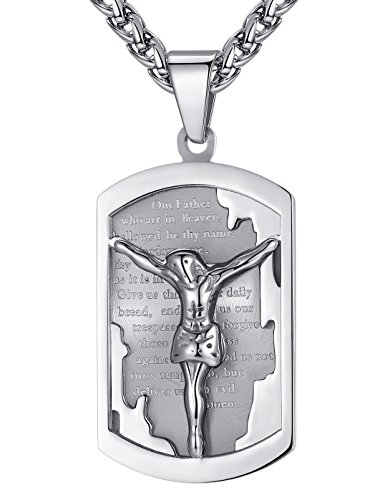Men’s Stainless Steel Lord’s Prayer Jesus Christ Crucifix Pendant Necklace, 24″ Chain, ggp130yi
