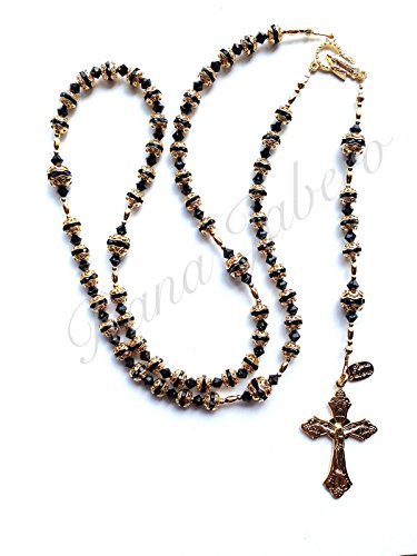 Rana Jabero Gold Plated Swarovski Crystal Jet Black Rhinestone & Gold Catholic Prayer Rosary