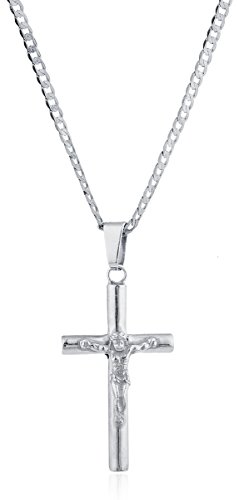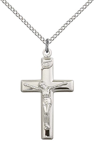 Sterling Silver Crucifix Pendant with 18″ Stainless Steel Lite Curb Chain.