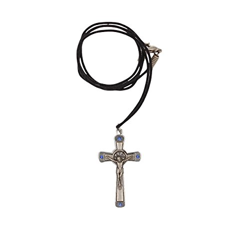 1.5-inch Metal Crucifix with Blue Crystal Accents on Cord Silver Tone