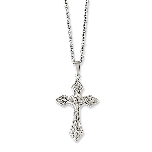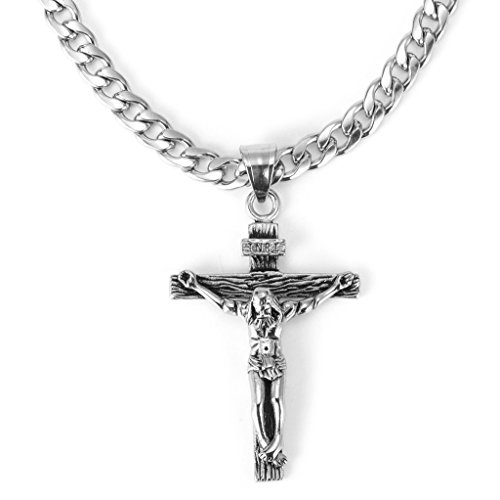 LineAve Men’s Stainless Steel Jesus Christ Crucifix Cross Pendant Necklace, 23 + 2″ Ext, 7a0027