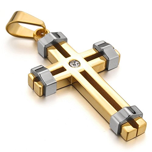 MENDINO Jewelry CZ Gold Crucifix Cross Stainless Steel Pendant Chain Necklace with a Velvet Bag