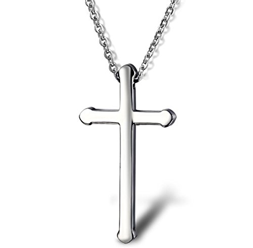 FIBO STEEL Stainless Steel Mens Womens Cross Necklace Crucifix Pendant, 24 inches