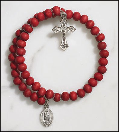 Our Lady of Guadalupe Wrap Bracelet Rose Scented 6mm Beads Silver Tone Crucifix