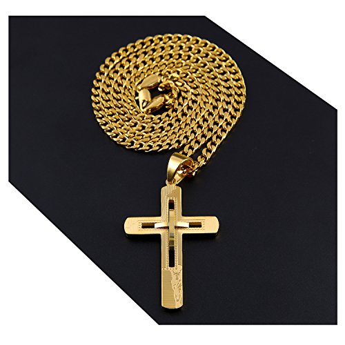 HZMAN Jewelry Gold Silver Tone Stainless Steel Antique Cross Crucifix Pendant Necklace For Men 24 Inch