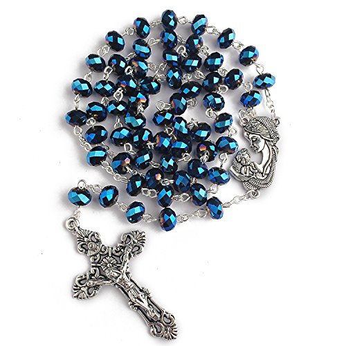 Hedi 6x8mm Deep Blue Crystal Beads Catholic Rosary with Madonna Center&Crucifix